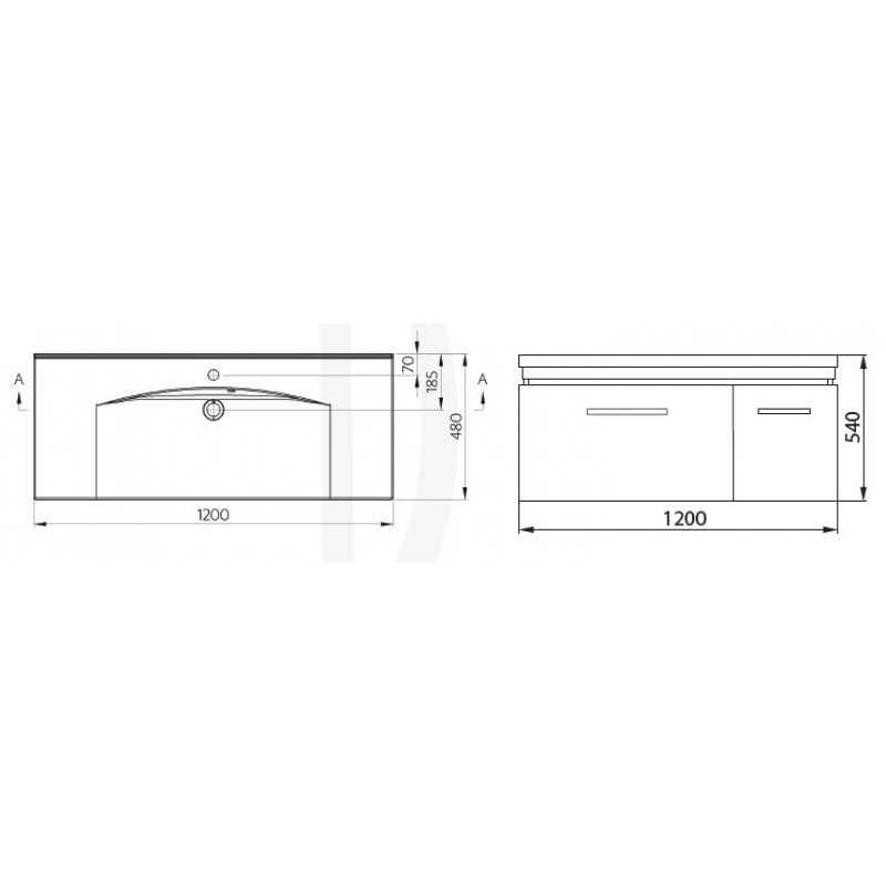 - розмір тумби: ширина 1200 мм, глибина 480 мм, висота 540 мм