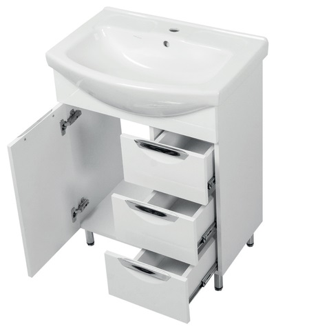 - 1 дверцята на петлях із плавним закриванням, 3 шухляди з телескопічними направляючими і плавним закриванням, 4 ніжки в комплекті, 4 врізні хромовані ручки