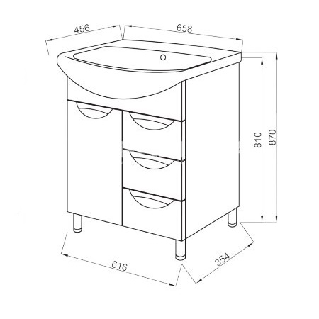 - розмір тумби: ширина 616 мм, висота 810 мм, глибина 354 мм