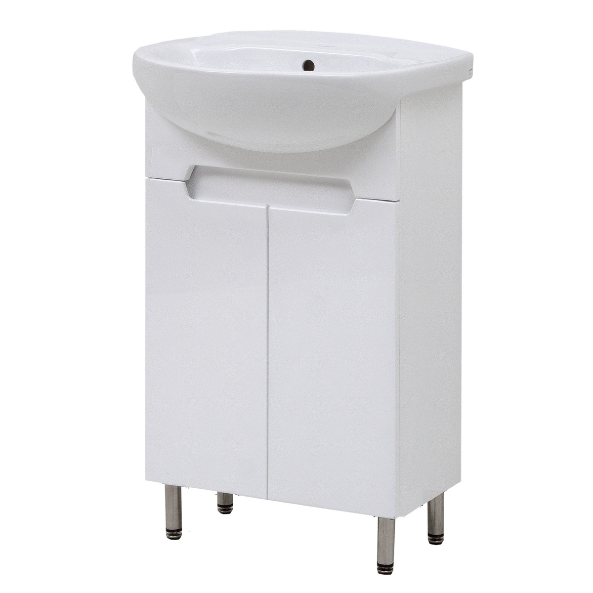 - розпашні дверцята на петлях із плавним закриванням, всередині 1 полиця, 4 хромовані ніжки в комплекті (висота регулюється), інтегровані ручки не виступають за межі фасаду