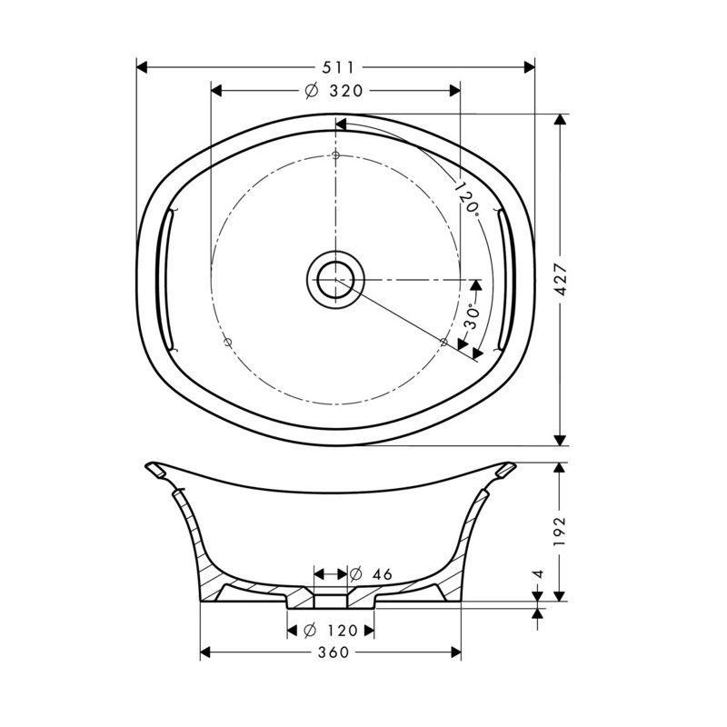 - 511 x 427 х 192 мм, внутрішня чаша Ø 320 мм