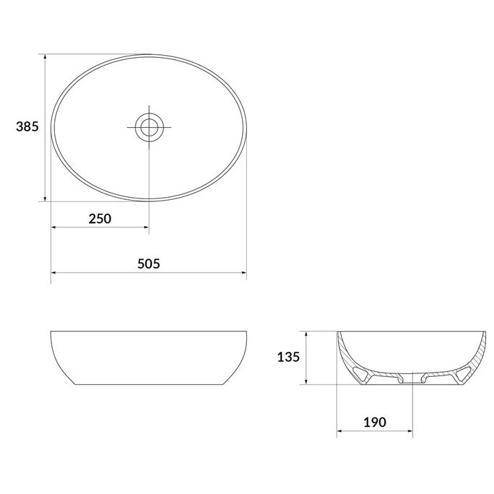 Умивальник настільний Cersanit Larga 50*38 білий матовий