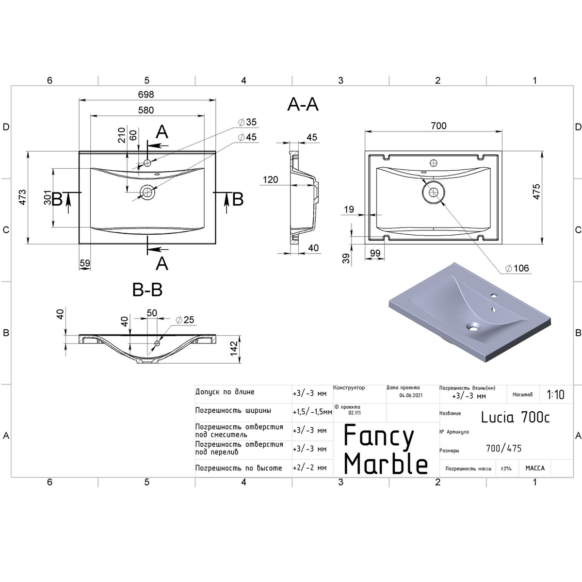 Раковина Fancy Marble Lucia 70 раковина Fancy Marble 70