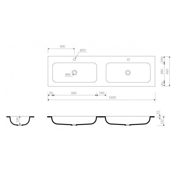 - 2 отвори під змішувач, без переливу