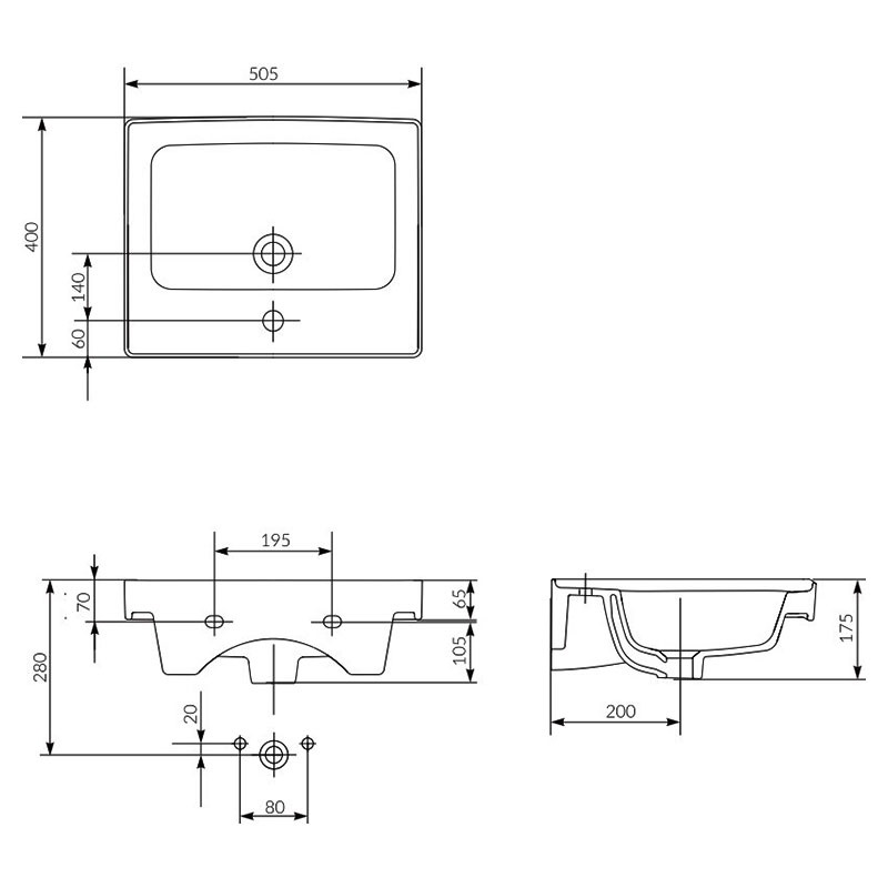 - розмір (Ш х Г): 505 х 400 х 175 мм