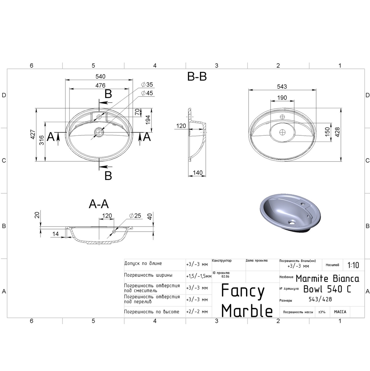 Умивальник Fancy Marble Bianca Bowl 54 (2105101)