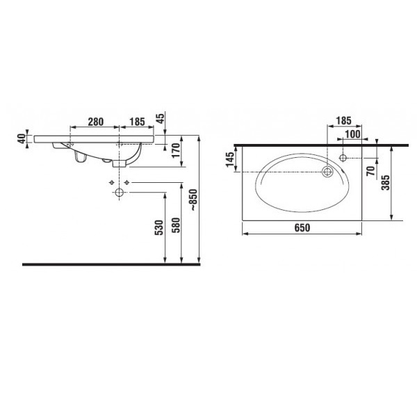 - правосторонній отвір для змішувача, перелив