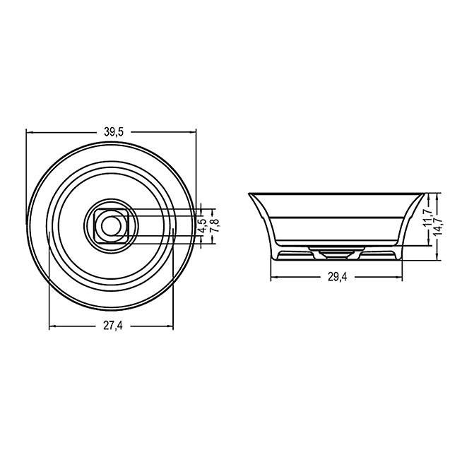 - Ø 39.5 x 14.7 см, основа 29.4 см