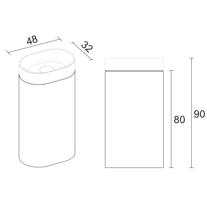 - 48 x 32 x 10 см, загальна висота 90 см