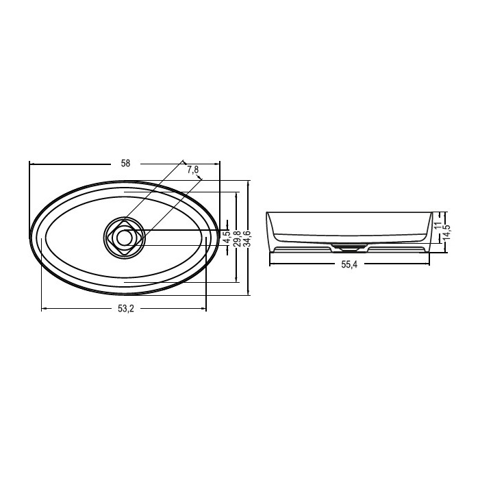 - 58 х 34.6 х 14.5 см, основа 55.4 см