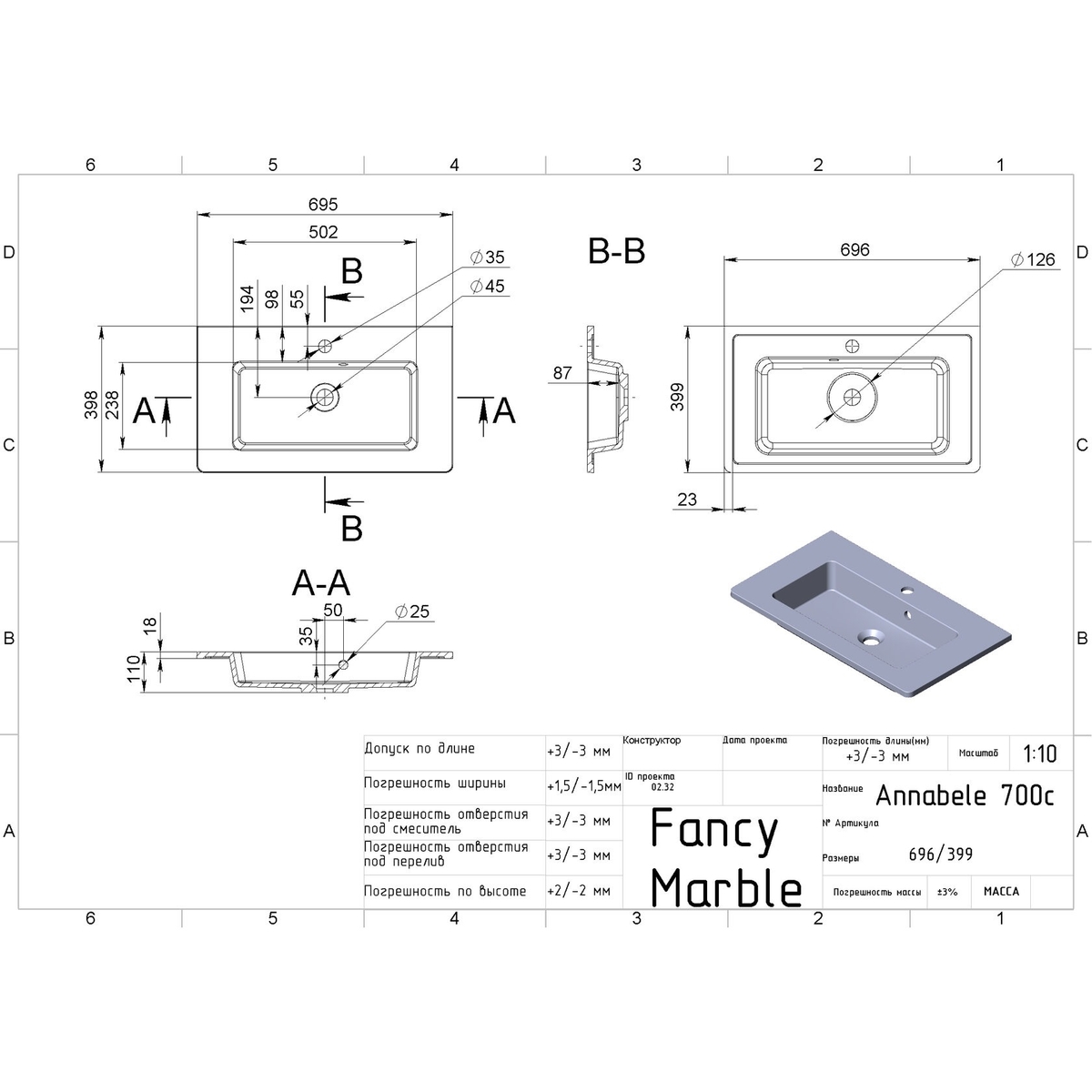 Умивальник Fancy Marble Annabelle 70 (4007101)