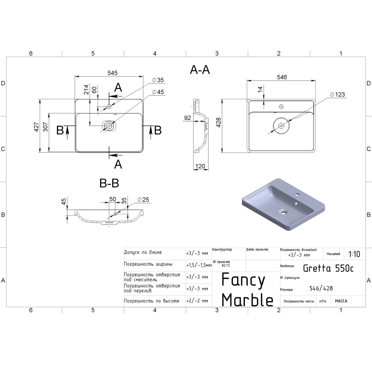 - опційно: фарбування раковини, тільки зовнішня частина, відповідно до таблиці RAL +25%