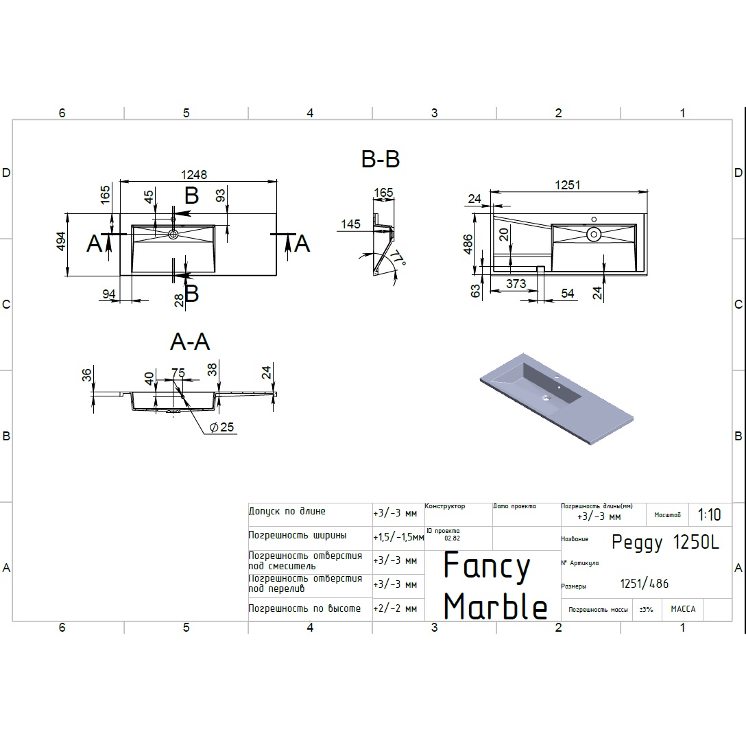 Умивальник Fancy Marble Peggy 125 L/R лівий