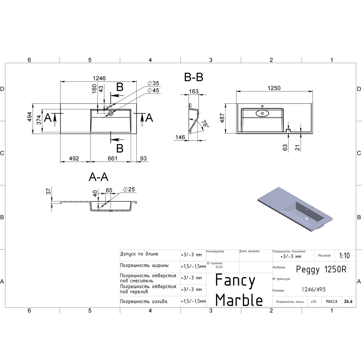 Умивальник Fancy Marble Peggy 125 L/R правий