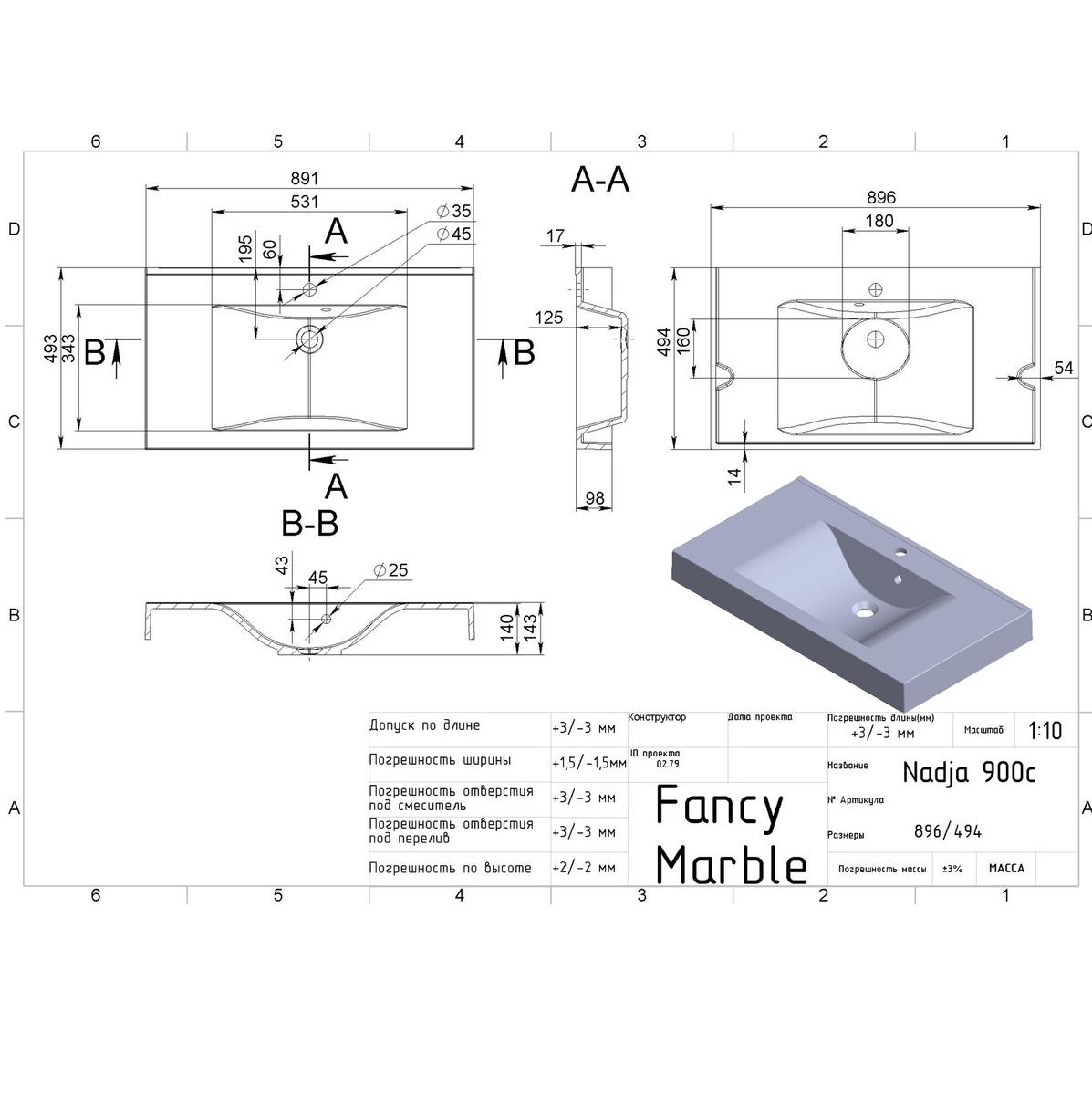 Умивальник Fancy Marble Nadja 90 (0209101)