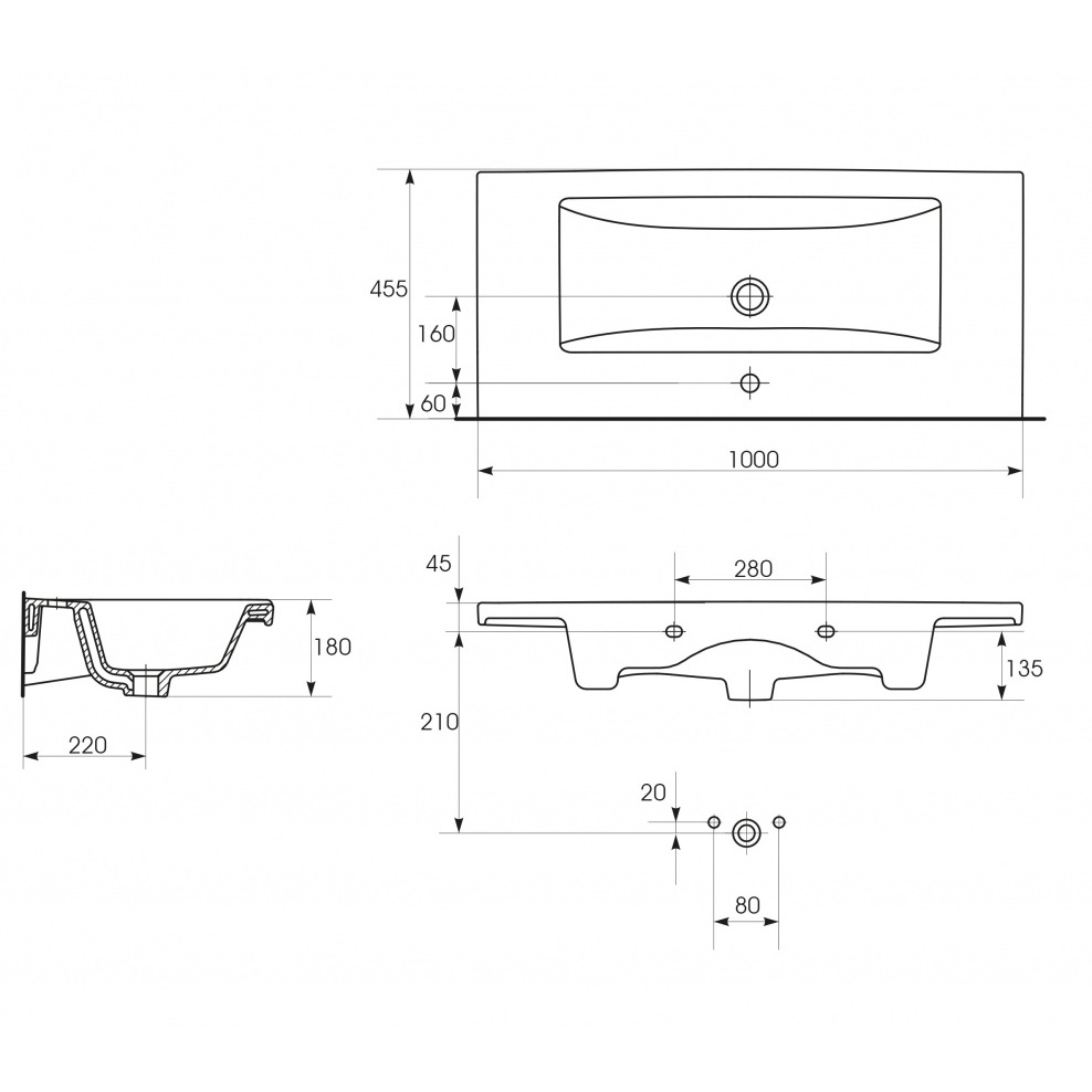 - Ш х Г х В: 1000 х 450 х 180 мм