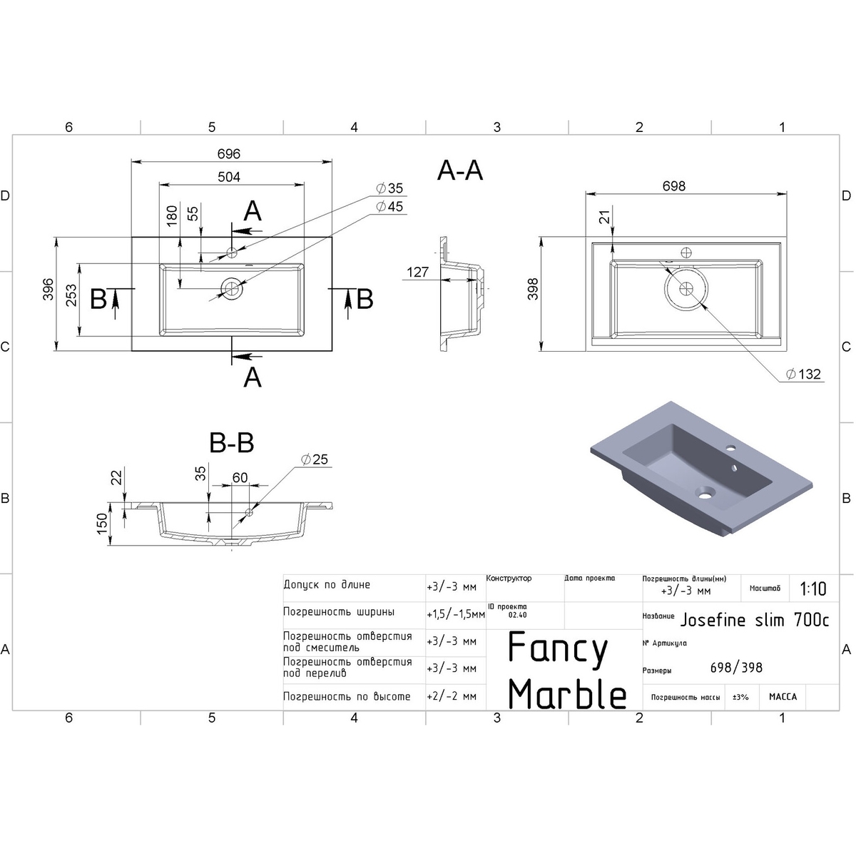 Раковина Fancy Marble Josefine Slim 70 Fancy Marble Josefine Slim 70