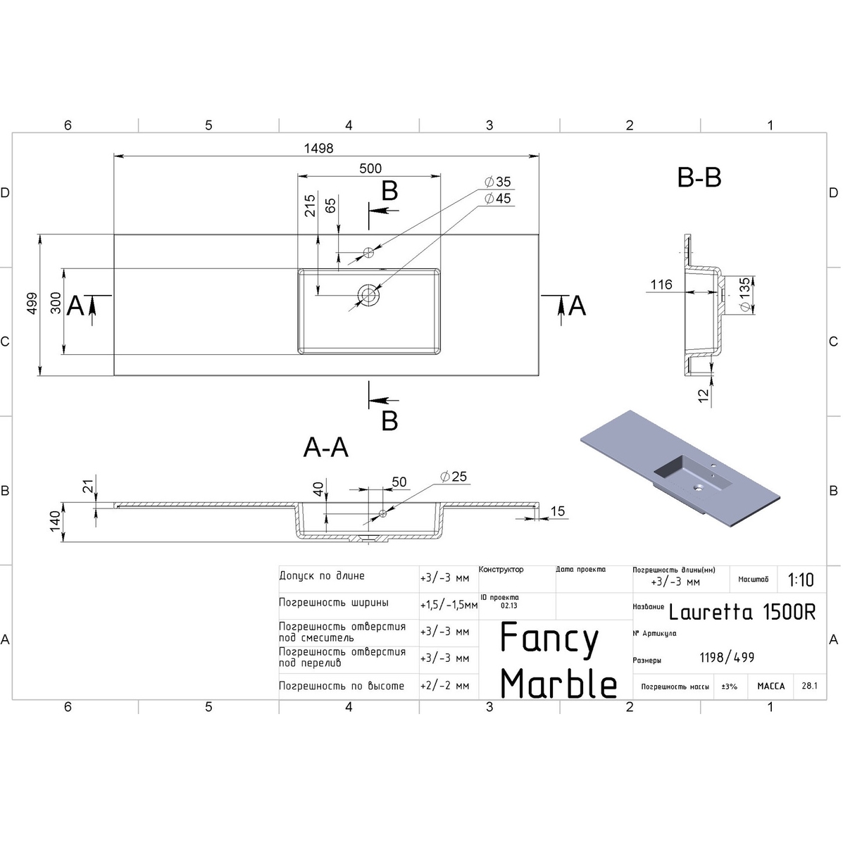 Умивальник Fancy Marble Lauretta 150 L/R правий