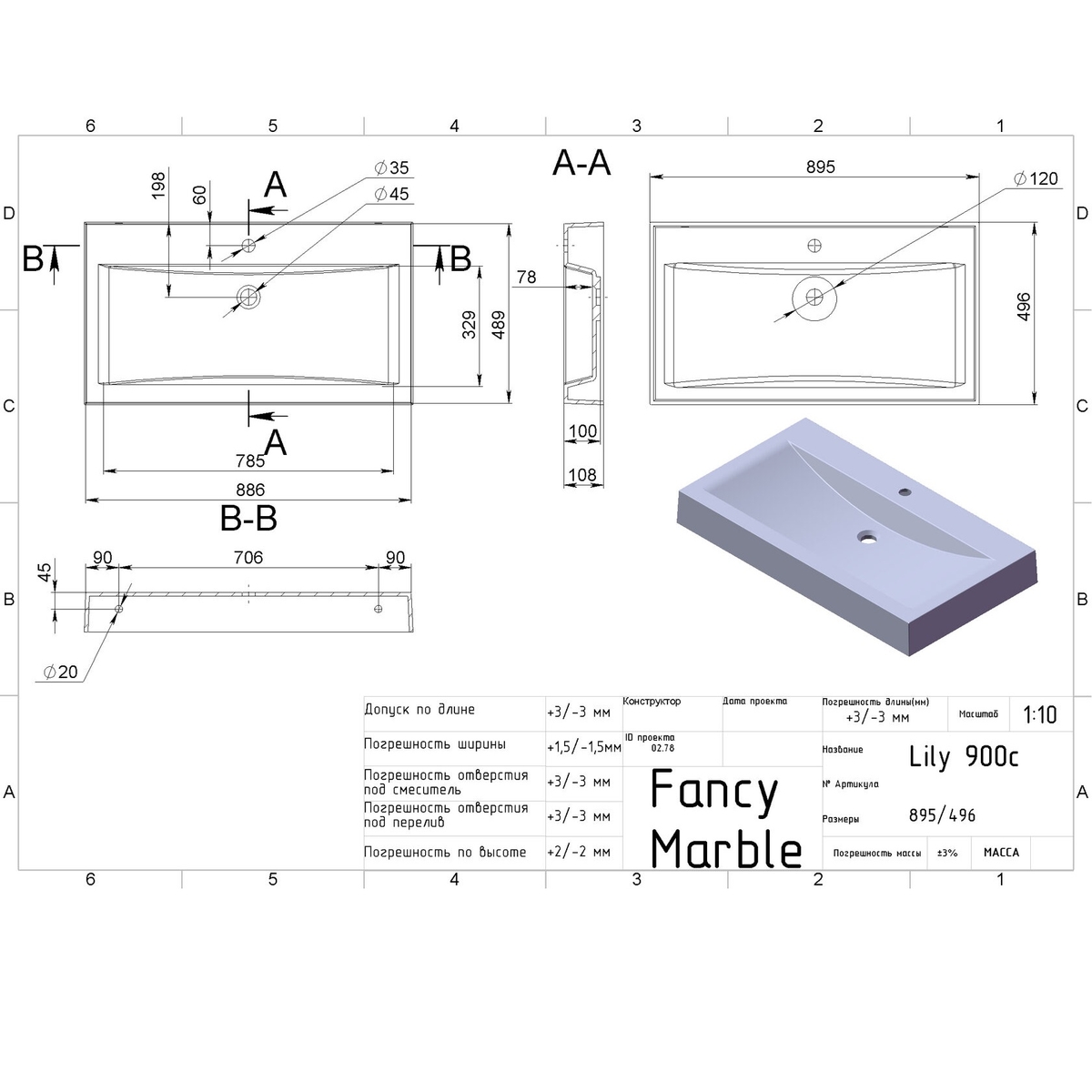 Раковина Fancy Marble Lily 90 Marble Lily 90
