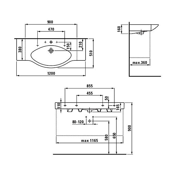 Умивальник Laufen Palace 120 без тримача для рушників