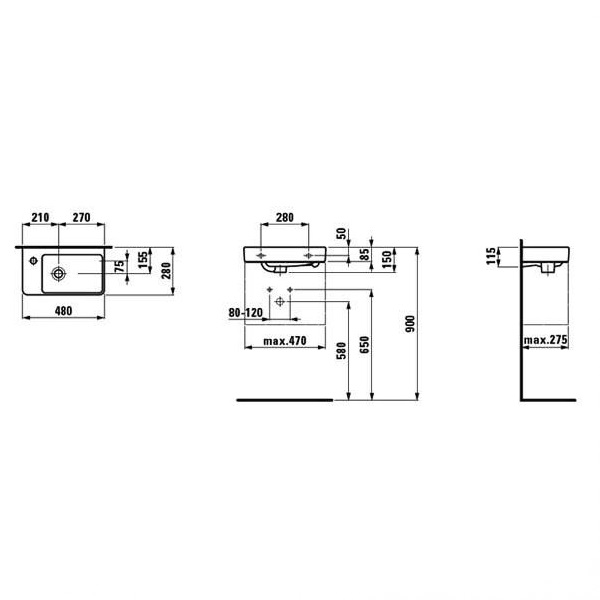 Умивальник Laufen PRO S 48 лівий