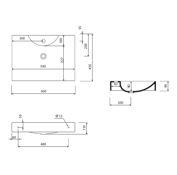 - отвір під змішувач, без отвору для переливу