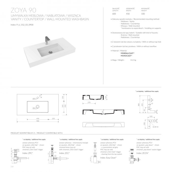 Умивальник Marmorin Zoya 900 (P_U_552_03_0900)