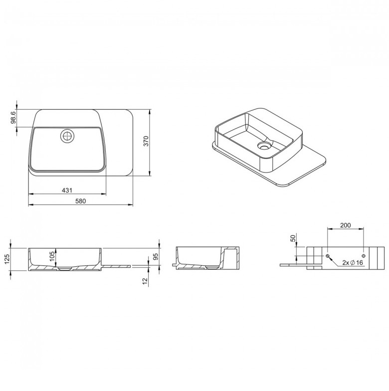 - з бічною поличкою, з отвором для змішувача, з переливом