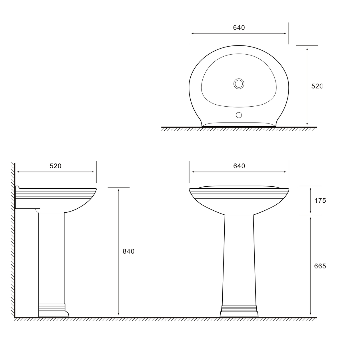- 640 х 520 х 175 мм, висота 840 мм