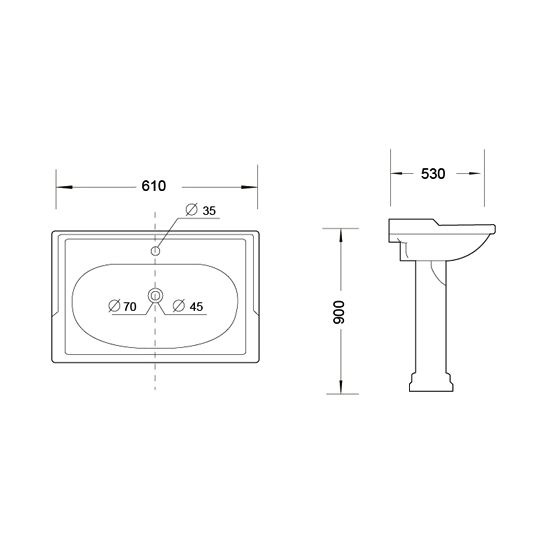 - з п'єдесталом, з отвором під змішувач і переливом
