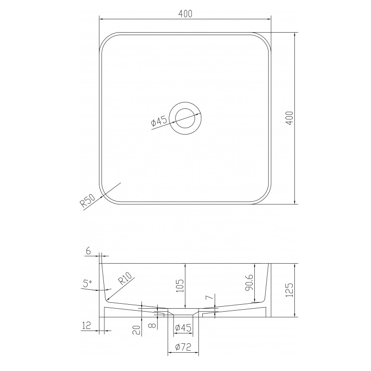 - 400 х 400 х 125 мм