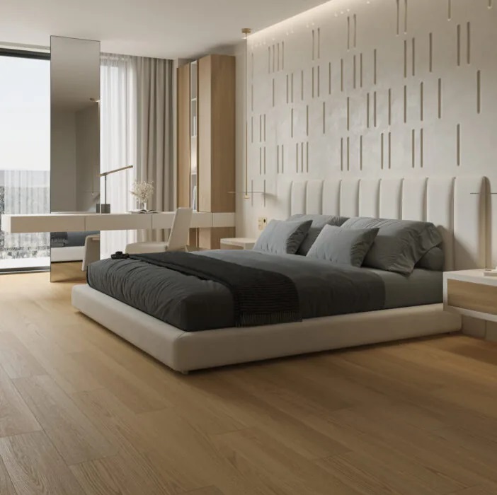 - найновіша унікальна цифрова технологія DLE+ system: 100% рельєфна поверхня тиснення в регістрі, 3D структура поверхні, необмежена доступність рівнів глибини та структури, брошований ефект натуральної деревини