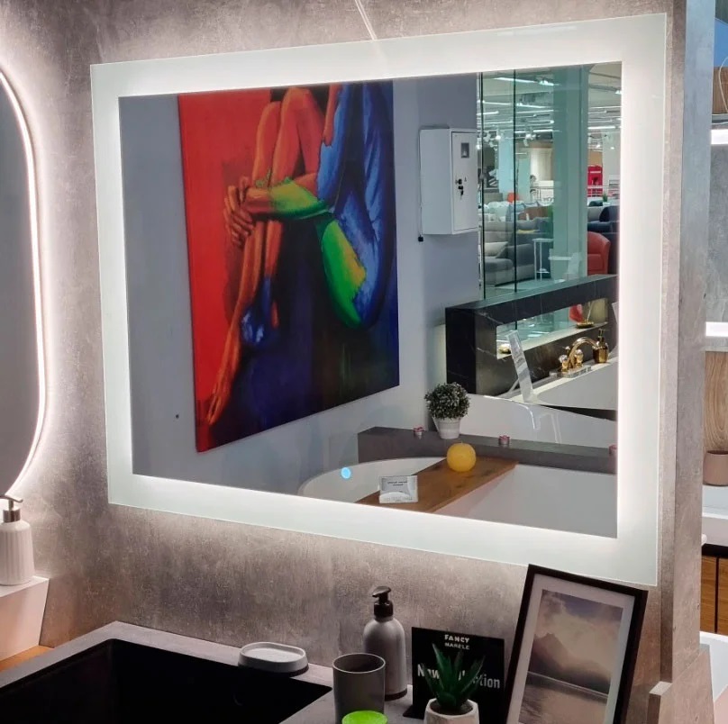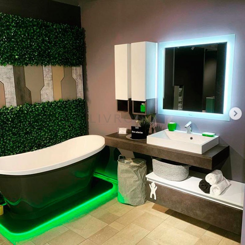 Інша частина виходить зі світлової кромки завширшки 5 мм по всьому периметру виробу, висвітлюючи людину, яка користується дзеркалом.